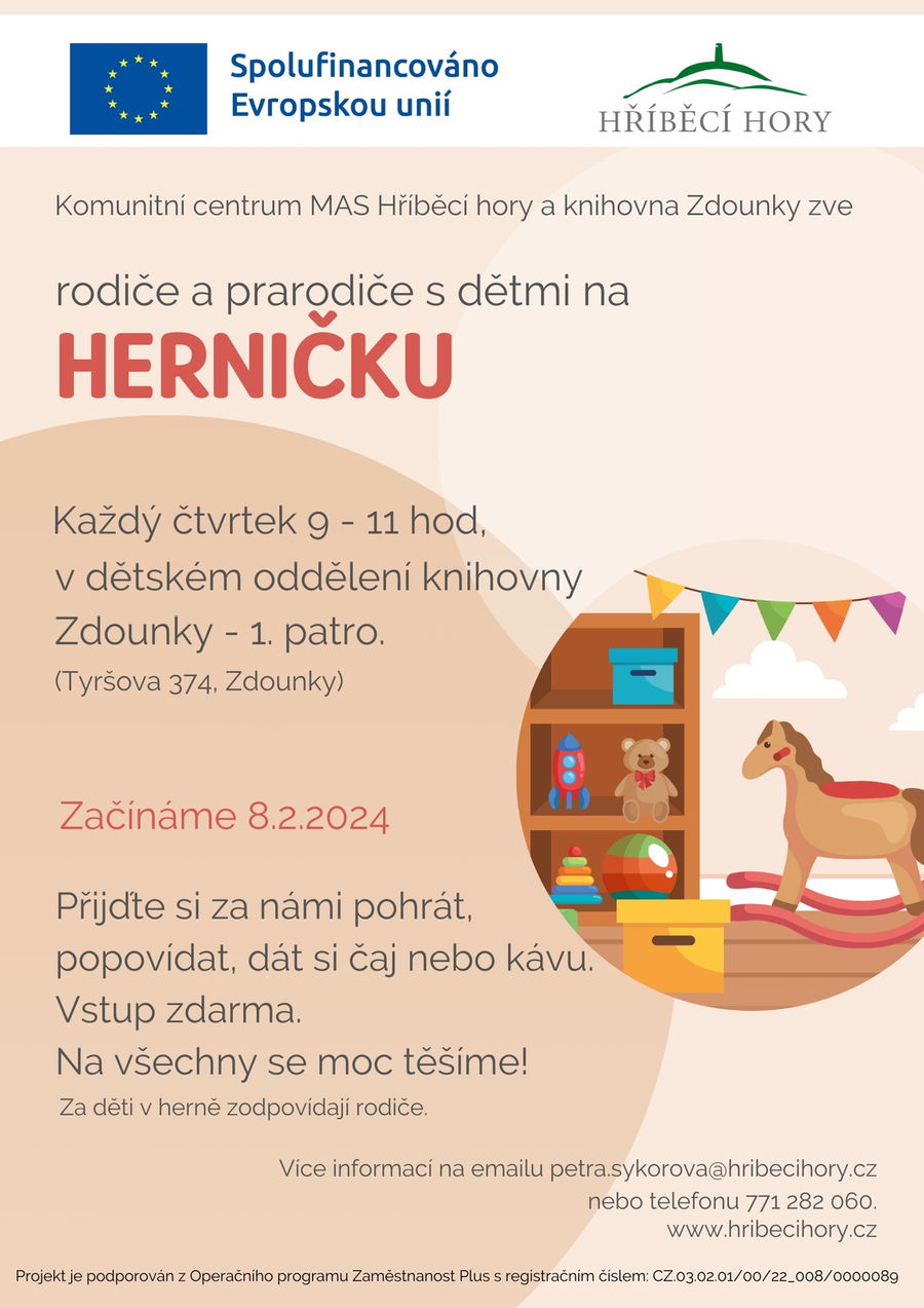 Úvod > O obci > Aktuality > Komunitní centrum MAS Hříběcí hory a knihovna Zdounky - Hernička pro děti a rodiče
